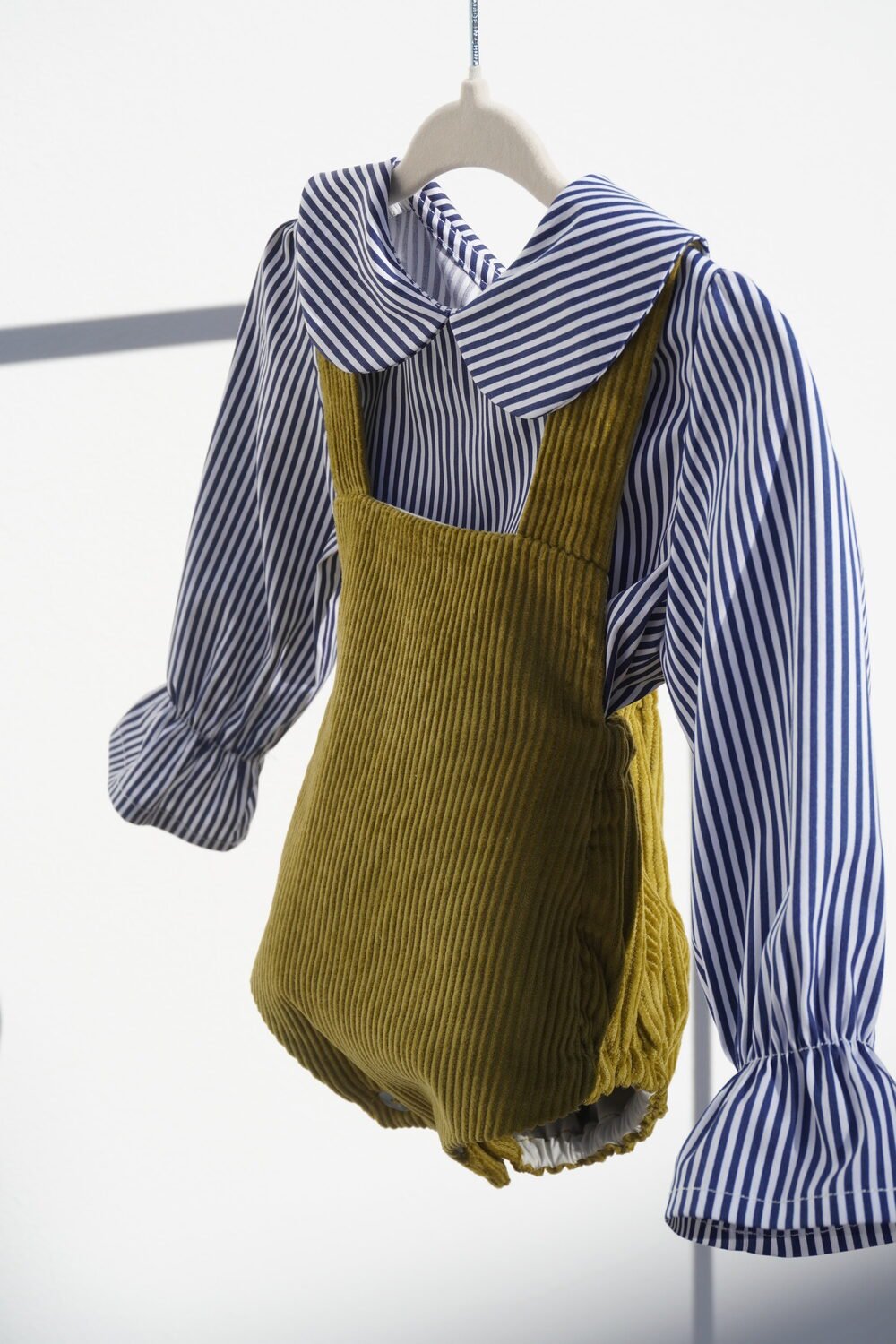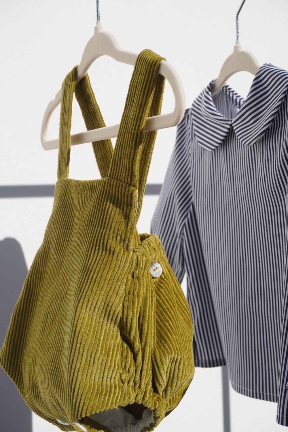 Ranita de pana con tirantes ajustables con botón . Cierre en el bajo con botones de nácar .